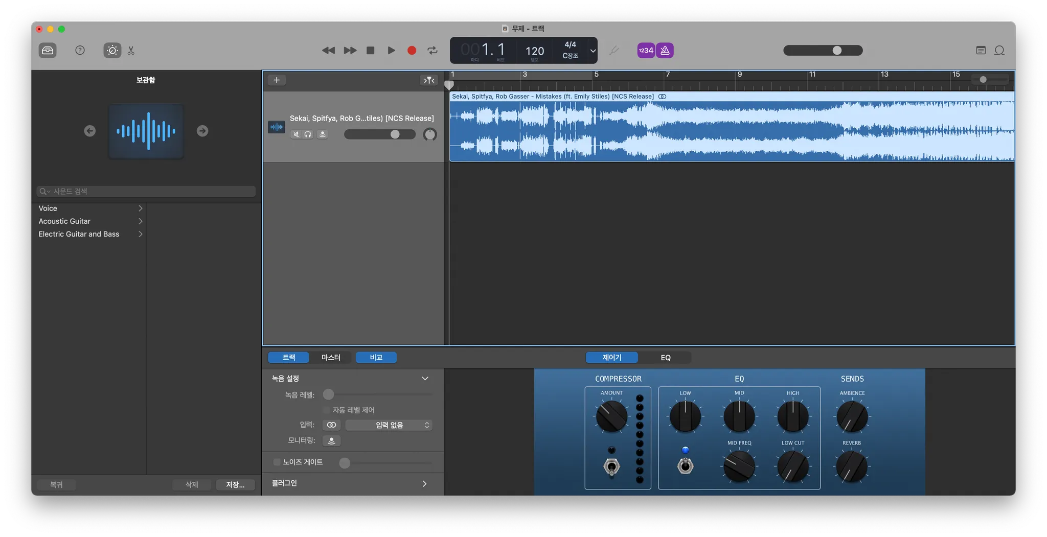 처리하고 싶은 곡을 Drag & Drop하여 오디오트랙 하나를 만듭니다.