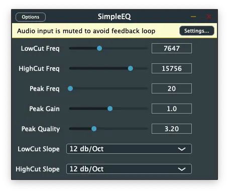 이후 빌드 및 실행을 하여 peak Filter의 Parameter를 바꾸어가며 소리의 변화를 관찰해봅시다. 변화가 느껴지시나요? 그럼 성공하셨습니다